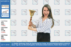 23.11. : Madlen Stottmeyer läutet die Opening Bell für Freitag. Die Wirtschaftsjournalistin moderierte dieser Tage die von Wirtschaftsagentur und Bankenverband initiierte „Fintech Week Vienna“ 22.11.: Julian Wöhrle und Christoph Thurnberger mit der Opening Bell für Donnerstag. Sie dürfen den Kapitalmarkt weiterhin über eine gute operative Performance der CA Immo informieren. http: caimmo.com www. facebook .com groups GeldanlageNetwork 21.11.: La Hong l äutet die Opening Bell für Mittwoch. Der Modeschöpfer und Unternehmer ist gern gesehener Gast auf diversen Weihnachtsfeiern. Und jetzt geht die 2018er-Saison voll los www.facebook.com groups GeldanlageNetwork 20.11.: Vanessa Herzog läutet die Opening Bell für Dienstag.... » Weiterlesen