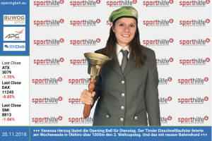20.11.: Vanessa Herzog läutet die Opening Bell für Dienstag. Der Tiroler Eisschnelllaufstar feierte am Wochenende in Obihiro über 1000m den 3. Weltcupsieg. Und das mit neuem Bahnrekord http: www.vanessaherzog.at www.facebook.com search top ? q=sportsblogged http: www.runplugged.com 19.11.: CFO Pascal Schmidt , CEO Andreas Grassauer und CSO Eva Prieschl-Grassauer läuten die Opening Bell für Montag und die Zeichnungsfrist des Wien-IPOs ihrer Firma Marinomed www.wienerborse.at emittenten aktien neunotierungen neunotierungen-2018 boersengang-marinomed-biotech-ag www.marinomed.com de www.facebook.com groups GeldanlageNetwork 16.11.: Tiemon Kiesenhofer läutet die Opening Bell für Freitag. Der Rosenbauer-Sprecher informierte gestern über eine K... » Weiterlesen