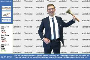 6.11.: Jan Hermann läutet die Opening Bell für Dienstag. Der Zertifikatespezialist und das Team bei Vontobel bieten mit der neuen deritrade App eine umfassende Zertifikate-Portfolio-Lösung zertifikate.vontobel.com DE Home www.facebook.com groups GeldanlageNetwork 5.11.: Stefan Borgas läutet die Opening Bell für Montag. Der RHI Magnesita-CEO hat heute das Trading Statement für das 3. Quartal mit einem verbesserten EBIT-Margen-Profil vorgelegt. www.rhimagnesita.com de www. facebook .com groups GeldanlageNetwork 2.11.: Anna Gasser läutet die Opening Bell für Freitag. Die Snowboarderin, die Olympiagold im Big Air und den Gesamtweltcupsieg holte, wurde zum 2. Mal Österreichs Sportlerin des Jahres www.anna-gasser.com http: www.sporthilfe.at ... » Weiterlesen