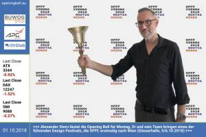 1.10.: Alexander Stern läutet die Opening Bell für Montag. Er und sein Team bringen eines der führenden Design-Festivals, die OFFF, erstmalig nach Wien (Gösserhalle, 5 6.10.2018) #OFFFVienna2018 http: offfvienna.com www.facebook.com groups GeldanlageNetwork 28.9.: Claudia Lösch läutet die Opening Bell für Freitag und ihr Leben nach der Karriere. In Pyeongchang 2018 holte der Paralympics-Skistar noch ihre Medaillen 8 und 9 bei Winterspielen http: www.oepc.at www.facebook.com groups Sportsblogged http: www.runplugged.com 27.9.: Jonathan Chladek läutet die Opening Bell für Donnerstag. Der Schüler (16) war unser Ansprechpartner für die 158 Nominierten beim Finanzblogger-Award Novomatic Smeil Alps 2018 http: www.smeil-award.com www.... » Weiterlesen
