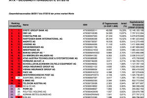 Liebe Leser!Die Wiener Börse hat die ATX-Beobachtungsliste 07 2018 veröffentlicht. Diese umfasst die Gesamtbörseumsätze 08 2017 bis 07 2018 der prime market-Werte. Siehat 11 12 Bedeutung für die nächste Überprüfung im September. Und so sieht es aus: Mit der Herausnahme der Buwog gibt es ein neues Bild, es ist alles nicht mehr so eng. Bereits im Juni wurde ja Porr in den ATX genommen. Derzeit sieht es aber ganz so aus als würde Do&Co die Porr verdrängen können. Die VWAP-Phase hat begonnen und Do&Co. startet nach dem Short-Squeeze Ende Juli mit sattem Vorsprung auf Porr. Die März-Neulinge AT&S und FACC sind abgesichert. » Weiterlesen