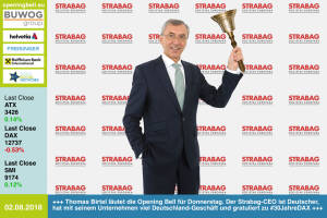 2.8.: Thomas Birtel läutet die Opening Bell für Donnerstag. Der Strabag-CEO ist Deutscher, hat mit seinem Unternehmen viel Deutschland-Geschäft und gratuliert zu #30JahreDAX http: www.strabag.com www.facebook.com groups GeldanlageNetwork #goboersewien 1.8.: Lars Brandau läutet die Opening Bell für Mittwoch. Die Stimme des DDV, die auch in Österreich via ZFA-Award sehr bekannt ist, gratuliert dem deutschen DAX zu 30 Jahren http: derivateverband.de #30JahreDAX www.facebook.com groups GeldanlageNetwork #goboersewien 31.7.: Matthias Hüppe läutet die Opening Bell für Dienstag. Der Leiter Derivatives Public Distribution | Global Banking and Markets bei der HSBC gratuliert zu #30JahreDAX www.hsbc-zertifikate.de www.facebook.com groups Geld... » Weiterlesen