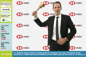 31.7.: Matthias Hüppe läutet die Opening Bell für Dienstag. Der Leiter Derivatives Public Distribution | Global Banking and Markets bei der HSBC gratuliert zu #30JahreDAX www.hsbc-zertifikate.de www.facebook.com groups GeldanlageNetwork #goboersewien 30.7.: Nina Kaiser läutet die Opening Bell für Montag. Die gebürtige Deutsche veranstaltet für Puls4 das 4Gamechangers-Festival. Natürlich wird zu #30JahreDAX herzlich gratuliert www.puls4.com . Puls4 ist zudem einer der Partner beim Börse Social Network Club www.facebook.com groups GeldanlageNetwork #goboersewien 27.7.: Marc Schmidt und Christoph Scherbaum läuten die Opening Bell für Freitag. Die Markteinblicker mit Lifestyle wünschen dem DAX alles Gute zu 30 Jahren #30Ja... » Weiterlesen