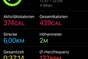 6 lockere Kilometer am Sonntag in Grundlage und dabei neue Ziele gesteckt. Die Wochen, in denen ich fast nichts gelaufen bin, neigen sich dem Ende zu. Aktivität: Lauf Dauer: 00:37:14 Distanz: 6 000 Pace: 06:12 km h: 9.68 Schuhe: Nike App: Runplugged Uhr: Apple Watch Runkit rechnet: Christian ist im Juli bisher 95,780 km gelaufen, im Schnitt täglich 4,353 km, ein Plus von 39,94 Prozent gegenüber dem Juni, als Christian 3,111 km Tagesschnitt hatte. Christians Top-Monat bisher: Juli 2017 mit 10,433 km täglich. >> Zum Runkit Profil von Christian Drastil Weitere Einträge bzw. selbst gratis anmelden, Aktivitäten verwalten und bloggen! » Weiterlesen