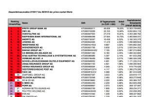 Liebe Leser!Die Wiener Börse hat die ATX-Beobachtungsliste 06 2018 veröffentlicht. Diese umfasst die Gesamtbörseumsätze 07 2017 bis 06 2018 der prime market-Werte. Siehat 10 12 Bedeutung für die nächste Überprüfung im September. Und so sieht es aus: Mit der Herausnahme der Buwog gibt es ein neues Bild, es ist alles nicht mehr so eng. Bereits in der Vorwoche wurde ja Porr in den ATX genommen. Derzeit sieht es ganz so aus als würde es zu einem Duell zwischen eben Porr und dazu Do&Co kommen. Das ist quasi Head to Head nach den jüngsten Entwicklungen und es wird da der gesamte August (VWAP) in puncto Marktkapitalisierung zählen. Wenn man mal eine grosse schnelle Überraschung bei CA Immo, Immofinanz und S Immo ausklammert (ist jetzt unwahrscheinl... » Weiterlesen