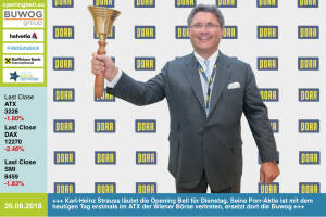 Mit der Porr gibt es seit heute einen neuen ATX-Wert. Dazupassend hat CEO Karl-Heinz Strauss („Die Aufnahme der Porr-Aktie in den ATX ist der Beweis, dass Investoren und Analysten unsere aktive Kapitalmarktpolitik und unseren offenen Dialog mit allen Stakeholdern schätzen. Nicht nur als europäisches Bauunternehmen, sondern auch als Börsenwert wollen wir nachhaltig zu den Besten gehören.“) die heutige Opening Bell geläutet. Gestern gab es satte 345.924 Stück Umsatz, das ist das Vierfache des bisher höchsten Porr-Umsatzes 2018. Beim Aktienkurs gab es keine Effekte, daher haben wir unsere wikifolio-Zusatzposition mit plus minus Null wieder geschlossen. Man muss aber auch dazu sagen, dass es ein extrem schwacher Tag war gestern. Insofern: Nix passiert. Porr (31,6... » Weiterlesen