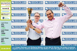 25.6.: Gregor Rosinger und Wolfgang Matejka läuten die Opening Bell für Montag. Die beiden Investoren begaben sich für unseren Börsenbrief http: www.boerse-social.com gabb in das Battle #1. "Eher Bär" gegen "eher Bulle" im Moment www.wienerborse.at indizes aktuelle-indexwerte uebersicht ?ISIN=AT0000A1YXV6&ID_NOTATION=201653404 www.wienerprivatbank.com bank asset-management aktienfonds www.facebook.com groups GeldanlageNetwork #goboersewien 22.6.: Bettina Pfluger läutet die Opening Bell für Freitag. Die Wirtschaftsredakteurin bei "Der Standard" schreibt unter anderem über das österreichische Kapitalmarktumfeld derstandard.at www.facebook.com groups Sportsblogged www.facebook.com groups GeldanlageNetwork 21.6.: Ball Designer l... » Weiterlesen