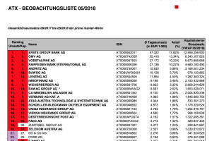 ATX-Beobachtungsliste 05/2018: AT&S und FACC bleiben in ATX-Form