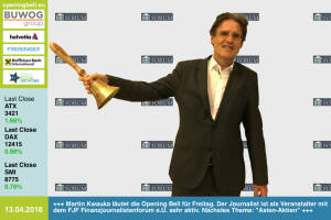 13.4.: Martin Kwauka läutet die Opening Bell für Freitag. Der Journalist und Vermögensberater ist als Veranstalter mit dem FJF Finanzjournalistenforum e.U. sehr aktiv. Nächstes Thema: "Asien-Aktien" http: www.finanzjournalistenforum.com www.facebook.com groups GeldanlageNetwork #goboersewien 12.4.: Andreas Böcskör läutet die Opening Bell für Donnerstag. Der Head of Investor Relations der SBO liess für den Börse Social Network Club unbürokratisch eine HV-Gastkarte ausstellen http: www.sbo.co.at www.facebook.com groups GeldanlageNetwork #goboersewien 11.4.: Irene Zöhrer , Julia Pleschke und Sandra Costea läuten die Opening Bell für Mittwoch. Das smoonr-Team hat digitale Kommunikation von Unternehmen un... » Weiterlesen