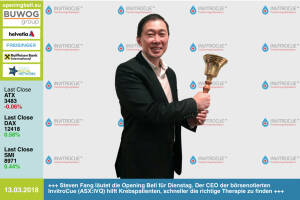 13.3.: Steven Fang läutet die Opening Bell für Dienstag. Der CEO der börsenotierten InvitroCue (ASX:IVQ) hilft Krebspatienten, schneller die richtige Therapie zu finden invitrocue.com www.facebook.com groups GeldanlageNetwork #goboersewien 12.3.: carwoom läutet die Opening Bell für Montag. Dabei geht es um Autobörsen via Internet und App, Gebrauchtwagen bzw. Nutzfahrzeuge zertifizierter Händler aus Österreich www.facebook.com groups GeldanlageNetwork #goboersewien 9.3.: Frank Weingarts läutet die Opening Bell für Freitag. Der Head of Private Investor Products Austria & CEE bei onemarkets verstärkt die Zertifikate-Experten-Runde im Magazine, aus den "Sechs Pistols" wurden die "Glorreichen Sieben" http: www.boerse-socia... » Weiterlesen