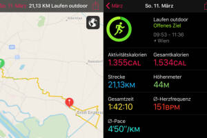 Bin heute von meinem Eltern aus nach Oberhausen gelaufen, wollte das einfach machen, weil ja dort am 1.Aprilein lässiger 10er ist, fürden ich eigentlich gerne meine erste Startnummer heuer gebucht hätte. Aber das ist ja Ostersonntag und das das geht nicht. War ein guter Lauf, hab mich trotz 80% Gegenwind sehr wohlgefühlt, ich kenne die Gegend auch, weil ich ja jahrelang im 22. gewohnt habe. Und dann hab ich auch noch zufällig einen alten Tenniskollegen getroffen. Zurück dann mit dem 26a und ein Mittagsessen bei den Eltern. Gut so. Aktivität: Lauf Dauer: 01:42:10 Distanz: 21 130 Pace: 04:50 km h: 12.41 Schuhe: Saucony App: Runplugged Uhr: Apple Watch Runkit rechnet: Christian ist im März bisher 72,650 km gelaufen, im Schnitt täglich 6,... » Weiterlesen