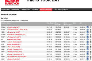 Das ist Passiv-Laufen in Perfektion:Unter http: live.frankfurt-marathon.com 2015 kann man persönliche Bekannte und österreichische Top-Läufer in diesen Minuten live mitverfolgen. In meinem Fall sind das in alphabetischer Reihenfolge: Anita Auttrit , Carola Bendl-Tschiedel , Karl Bruzek, Alexandra Embacher, Karin Freitag , Barbara Labak, Andrea Mayr , Heidi Novy, Thomas Pundy , Harald Radatz , Christoph Sander , Andreas Schweighofer, Rudi Seiberl und Reinhard Spiesberger. Über diejenigen, die mit Link unterlegt sind, haben wir auf unseren Seiten schon das eine oder andere berichtet. Wer Lust hat, klickt reinToi, toi, toi allen. Das Tool zumMitfiebern ist lässig. Besonderen Dank an Andi Schweighofer, er wird mir seinen 22. Kilometer widmen. Ich finde diese Kopfsport-Ide... » Weiterlesen