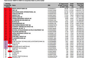 Liebe Leser!Die Wiener Börse hat die ATX-Beobachtungsliste 9 2015 veröffentlicht. Diese umfasst die Gesamtbörseumsätze 10 2014 bis 9 2015 der prime market-Werte. Für die nächste Umstellung massgeblich wird die Liste von 02 2015 sein. Heisst: Sieben Monate picken, fünf werden noch ersetzt. Die Konstellation: Per September hatte sich zuletzt nichts verändert und die 20 aktuellen ATX-Members wirken auch in der neuen Liste stabil. Erster Aspirant bleibt AT&S, dahinter klafft bei den Umsätzen ein Loch. Mayr-Melnhof wäre von er Market Cap her die Nr. 11, rangiert aber beim Handelsvolumen unter ferner liefen. Siehe dazu auch die ATX-Kandidatenroadshow: http: boerse-social.com virtuellemesse 300915 . » Weiterlesen