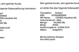 100 Tage, 100 Wertpapiere: Weiterer Teilverkauf Cross nach 140 Prozent Plus, Resiz...
