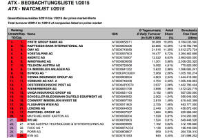 Liebe Leser!Die Wiener Börse hat die ATX-Beobachtungsliste 1 2015 veröffentlicht. Diese umfasst die Gesamtbörseumsätze 2 2014 bis 1 2015 der prime market-Werte. Für die nächste Umstellung massgeblich wird die Liste von 02 2015 sein. Heisst: Elf Monate picken, zwei werden noch ersetzt. Die Konstellation: Zuletzt wurde Buwog statt Mayr-Melnhof aufgenommen und die Buwog wird auch im März-ATX dabei sein, das Unternehmen liegt im guten Mittelfeld der Liste. Spannend ist die Konstellation um Rang 20, denn die zuvor erwähnte Mayr-Melnhof liegt im Umsatz knapp vor dem ATX-Wert RHI. Auch Zumtobel muss noch zittern. Damit heisst es: Drei Titel um zwei Ränge. Interessanterweise sind mit Zumtobel bzw. RHI just die Top-Performer aus 2014 bzw. "2015 ytd per heute" in Ge... » Weiterlesen