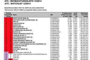 Liebe Leser!Die Wiener Börse hat die ATX-Beobachtungsliste 12 2014 veröffentlicht. Diese umfasst die Gesamtbörseumsätze 1 2014 bis 12 2014 der prime market-Werte. Es ist damit eine besondere Liste, weil das Gesamtjahr 2014 einfliesst. Für die nächste Umstellung massgeblich wird aber erst die Liste von 02 2015 sein. Heisst: Zehn Monate picken, zwei werden noch ersetzt. Die Konstellation: Zuletzt wurde Buwog statt Mayr-Melnhof aufgenommen und die Buwog wird auch im März-ATX dabei sein, das Unternehmen liegt im guten Mittelfeld der Liste. Aus heutiger Sicht ist Mayr auch der einzige wirkliche Kandidat für eine Aufnahme per März, hat allerdings schlechtere Karten als die ATX-Werte RHI und Zumtobel, der Abstand zur RHI ist aber marginal. Erstmals ist Porr i... » Weiterlesen