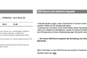 Mit heute sind es noch drei Handelstage in 2019 , heute natürlich der letzte vor Weihnachten , daher mal auf diesem Wege alles Gute ! wikifolio hat knapp vor Weihnachten die wikifolio-Trader noch mit Informartionen versorgt . Denn: Im Rahmen eines Forschungsprojekts mit der Universität Zürich und der Goethe Universität Frankfurt wurden für alle wikifolios einmalig Performance-Reports erstellt. Der Stichtag für die berechneten Kennzahlen ist der 29. November 2019. Das obere Bild zeigt die Rendite von " Stockpicking Österreich" im Vergleichen mit allen wikifolios und dem Euro Stoxx 50. Freilich nicht im Boom-Jahr 2020, sondern seit Start 2013. [pic2] Dieses Bild zeigt den ESG-Score . Und da schau her, mein wikifolio hat einen besseren ethischen Score als de... » Weiterlesen
