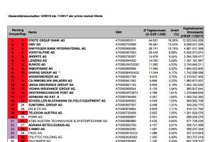 Liebe Leser!Die Wiener Börse hat die ATX-Beobachtungsliste 11 2017 veröffentlicht. Diese umfasst die Gesamtbörseumsätze 12 2016 bis 11 2017 der prime market-Werte. Siehat 9 12 Bedeutung für die nächste Überprüfung im März. Und so sieht es aus:AT&S und erstmals Polytec wären aktuell statt Zumtobel und Agrana im ATX. Es ist aber ganz eng um die ATX-Plätze, auch Porr, Do&Co, FACC und Palfinger sind im Spiel. » Weiterlesen