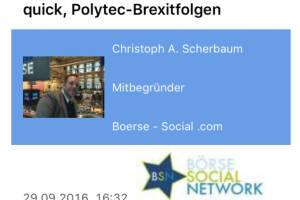 Wochenendthema und "als Spass" zu verstehen. Aber ich finde es schon "heftig" (haha), dass sich Christoph Scherbaum, weil er einmal mit mir aufs Podium darf, unserem www.boersenradio.at gleich als Mitbegründer von www.boerse-social.com "verkauft" ... Bilder vom Podium: BSN Einblicke Roadshow Teil II BSN Einblicke Roadshow Teil I » Weiterlesen