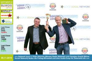 Wir sind auf der Last Mile. Gemeint ist das Mega-Projekt "CD Produktion 25 Jahre ATX", das wir bei unserem Partner Börsen Radio Network in Auftrag gegeben haben. Die Mitmach-Aufrufe über Mails und Newsletter haben Wirkung gezeigt- es werden letztendlich Ausschnitte aus zwischen 30 und 40 Interviews in die CD einfliessen. Diese wird nun definitiv eine Doppel-CD. Tonträger 1 ist fertig, Tonträger 2 in Fertigstellung. Also: es wird eine Doppel-CD werden dazu, aufgeteilt auf 5 CDs, alle Interviews in der Langfassung zum Downloaden ab Mitte nächster Woche wird täglich ein Interview auf der http: www.boersenradio.at gespielt dazu täglich ein Transkript auf http: www.boerse-social.com Details werden wir im nächsten Fachheft präsentieren, das wohl am 19.1.... » Weiterlesen