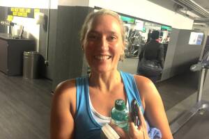 Nettes Hallo im Fitinn, ein 3:26er und Lorenas Team (Christian Drastil)