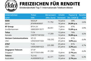 Telekom-Aktien: Freizeichen für Rendite - KDDI, BT, Telus, Verizon, AT&T, Singapor...