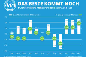 „Nach der Statistik ist jeder vierte Mensch ein Chinese, aber hier spielt gar kein Chinese mit“, philosophierte einst der legendäre Fußball-Reporter Werner Hansch. Auch am Aktienmarkt ist das mit den Zahlenspielen so eine Sache: Historisch betrachtet gibt es keinen schlechteren Börsenmonat als den September. Im Durchschnitt knickt der DAX im neunten Monat um 2,6% ein. Dieses Jahr hingegen haben sich die deutschen Top-Aktien mit einem September–Minus von 0,8% recht tapfer geschlagen. Über lange Zeiträume sind saisonale Muster allerdings ziemlich robust. Für alle, die an die selbsterfüllende Prophezeiung des Kalenders glauben, beginnt deshalb jetzt die beste Zeit des Jahres: Seit der DAX am 30.12.1987 das Licht des Parketts erblickt hat, stehen fü... » Weiterlesen