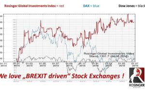 Gesternwar wieder so ein Tag – die Börsen crashten wegen des Brexit und die Herde der ahnungslosen, naiven ach so liberalen Investoren wurde auf dem falschen Fuß erwischt. Keiner erwartete das Ergebnis – obwohl es offensichtlich war. Europas Mitte ist in Wahrheit viel weiter entfernt von Angela Merkels als konservativ getarnter Links-Politik als es die Tagträumer in Politik und manche in der Wirtschaft wahrhaben wollen. Wir werden nach dem BREXIT noch einige ***xits erleben, weil im 21. Jahrhundert wollen die die Völker Autonomie. Wer beobachten kann erkennt diesen Megatrend – der Rest wird wirtschaftlich untergehen. Diesen Megatrend erkennend war ich auch heute natürlich richtig positioniert und gewann – plangemäß, eigentlich eine reine Pfli... » Weiterlesen