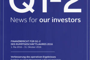 "Q1-2 News for our investors" "In den zurückliegenden beiden Quartalen haben wir die Fokussierung auf unsere beiden Kernbereiche Büro und Einzelhandel erfolgreich fortgesetzt, die Portfolio-E zienz gesteigert und den Vermietungsgrad weiter erhöht." Oliver Schumy, CEO Hier zum Bericht mit allen Details. Untenstehend ein paar Seiten, mehr unter diesem Link . » Weiterlesen