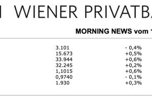Aus den Morning News der Wiener Privatbank: "Die Wiener Börse hat am Mittwoch mit deutlichen Kursgewinnen geschlossen. Von Sitzungsbeginn an ging es am Wiener Markt kontinuierlich nach oben, gestützt von positiven Vorgaben der Wall Street vom Vortag. Mit der Veröffentlichung frischer US-Inflationsdaten sprang der heimische Leitindex dann auf ein noch höheres Niveau und schoss um 1,61 Prozent fester auf 3.160,23 Einheiten. Der breiter gefasste ATX Prime legte um 1,55 Prozent auf 1.602,43 Zähler zu. In den USA hat sich die Inflation im Juni weiter abgeschwächt und fiel zudem noch ein wenig besser aus als am Markt erwartet worden war. Die US-Konsumentenpreise stiegen demnach zum Vorjahr um 3,0 Prozent, Analysten hatten mit 3,1 Prozent gerechnet. Im Mai war die Rate noch bei 4,0 ... » Weiterlesen