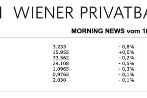 Aus den Morning News der Wiener Privatbank: "Nach unten ging es gestern erneut für den heimischen Markt, der ATX musste eine weitere Einbuße von 0,5% hinnehmen, was den dritten Verlusttag in Folge bedeutete. Am heimischen Markt prägte am Berichtstag vor allem die laufende Berichtssaison das Geschehen, Quartalszahlen wurden von der Addiko Bank, Polytec, Verbund und Wienerberger vorgelegt. Für den Verbund ging es gestern um 0,5% nach unten, der teilstaatliche Stromkonzern hat im ersten Quartal den Gewinn im Vergleich zum Vorjahresquartal leicht gesteigert. Gewinnabschöpfungen in Deutschland, Österreich und Rumänien belasteten dabei das Ergebnis mit 68,6 Millionen Euro, das Konzernergebnis legte im Vergleich zum Vorjahresquartal um 2,8 Prozent auf 529,0 Millionen Euro zu. ... » Weiterlesen