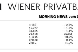 Aus den Morning News der Wiener Privatbank: "Die Wiener Börse hat am Donnerstag befestigt geschlossen, der ATX verbuchte ein Plus von 0,6%. Am heimischen Aktienmarkt prägte vor allem die auf Hochtouren laufende Berichtssaison das Handelsgeschehen, Unternehmenszahlen wurden von AMAG, Andritz, Polytec, Strabag und Warimpex präsentiert, heute folgen dann noch die Erste Group, OMV und Palfinger mit den aktuellen Quartalsergebnissen. In einem starken europäischen Bankensektor konnten auch die heimischen schwergewichteten Bankenwerte klare Kursgewinne aufweisen, die Bawag erzielte einen Zuwachs von 1,0%, für die Erste Group ging es um 1,4% nach oben und die Raiffeisen Bank International konnte sich über einen 1,8% höheren Schlusskurs freuen. Andritz musste trotz erfreulicher G... » Weiterlesen