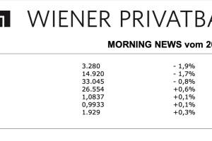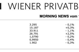 Aus den Morning News der Wiener Privatbank: "Die Wiener Börse hat am Dienstag mit leichten Verlusten geschlossen. Der österreichische Leitindex ATX fiel um 4,85 Punkte oder 0,15 Prozent auf 3294,72 Zähler. Das europäische Umfeld zeigte sich hingegen mehrheitlich freundlich. Die Aussicht auf eine etwas weniger restriktive Geldpolitik der EZB hat laut Marktbeobachtern den europäischen Aktienmarkt angetrieben. Die Nachrichtenagentur Bloomberg hatte mit Verweis auf informierte Personen berichtet, dass die EZB bei den noch anstehenden Zinserhöhungen im Kampf gegen die hohe Inflation ein langsameres Tempo in Betracht ziehe. Datenseitig richteten sich die Blicke der Anleger am Vormittag nach Deutschland: Dort haben sich die Konjunkturerwartungen von Finanzexperten im Januar deutlich... » Weiterlesen