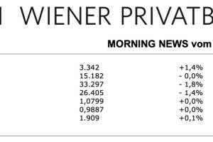 Aus den Morning News der Wiener Privatbank: "Die Wiener Börse hat am Montag moderat im Plus geschlossen, der ATX beendete einen weitgehend ruhigen Handelstag mit einem Aufschlag von 0,3%. Wichtige Datenveröffentlichungen gab es zum Wochenbeginn nicht, die Börsen werden weiter von dem jüngsten Nachlassen der Konjunktur- und Zinsängste gestützt. Auch von der Unternehmensseite her blieb es in Österreich gestern sehr ruhig, es gab so gut wie keine signifikanten Meldungen. Gesucht waren so wie im übrigen Europa die Immobilientitel, für die CA Immo gab es eine Verbesserung von 2,7%, Immofinanz konnte sich um 1,5% steigern und für UBM Development gab es sogar einen Zuwachs von 3,4%. Die großen heimischen Bankenwerte zeigten eine unterschiedliche Entwicklung... » Weiterlesen