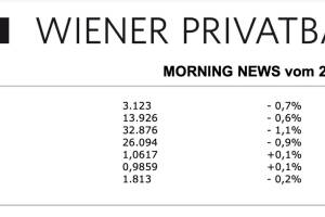 Aus den Morning News der Wiener Privatbank: "Gestern Mittwoch präsentierte sich der heimische Aktienmarkt schwächer. Der ATX startete zu Beginn tiefer und schaffte es im Laufe des Tages nicht aus dem roten Terrain zu kommen. Zu Handelsschluss stand ein Verlust von 0,7 Prozent bei 3.122,96 Punkte fest. Die Meldungslage war auch gestern erwartungsgemäß sehr dünn. Schwache Vorgaben aus Asien belasteten den ATX. Verlierer des Tages war Porr mit einem Abschlag von 3,9 Prozent, gefolgt von Frequentis mit 2,8 Prozent minus. Bei den Banken konnte als einzige die kleine Addiko Bank ein gutes Kursplus erzielen, die Erste Group schaffte mit plus 0,1 Prozent gerade noch ein positives Vorzeichen. Schlechter stand es für die Raiffeisen Bank International mit 0,2 Prozent Abschlag und die B... » Weiterlesen
