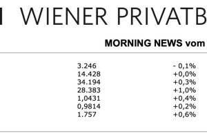 Aus den Morning News der Wiener Privatbank: Die Wiener Börse hat am Donnerstag etwas höher geschlossen, der ATX konnte sich um 0,3% steigern. Es war insgesamt ein sehr ruhiger Handel, der hauptsächlich von den Ergebnisvorlagen einiger Unternehmen dominiert wurde. Schoeller-Bleckmann konnte nach der Präsentation 1,0% zulegen, die Zahlen waren weitgehend im Rahmen der optimistischen Erwartungen, der Ölfeldausrüster konnte sowohl beim Umsatz als auch beim Gewinn zulegen und erzielte nach eigenen Angaben die höchsten Werte für die ersten drei Geschäftsquartale seit zehn Jahren, auch der Auftragsbestand übertraf die Schätzungen. Immofinanz legte ebenfalls ein sehr starkes Ergebnis nach den ersten neun Monaten des Jahres vor, die Mieterlöse beliefen si... » Weiterlesen