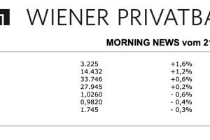 Aus den Morning News der Wiener Privatbank: Die Wiener Börse hat den Handel am Dienstag mit moderaten Gewinnen beendet, nach dem überraschenden Rückgang der US-Produzentenpreise war es zeitweise deutlich nach oben gegangen, ein Teil der Gewinne musste dann aber wieder abgegeben werden, der ATX schloss mit einem Plus von 0,6%. Positive Nachrichten von der makroökonomischen Seite kamen aus Deutschland, dort hatte sich die Konjunkturerwartung, gemessen am ZEW-Index, gegenüber dem Vormonat um 22,5 Punkte verbessert, das war zwar immer noch im negativen Bereich, aber deutlich besser als zuvor von Analysten angenommen. Im Blickpunkt des Interesses standen zwei Unternehmensergebnisse, Rosenbauer rutschte in die roten Zahlen, der Feuerwehrausrüster erzielte bei relativ niedrigem Hand... » Weiterlesen