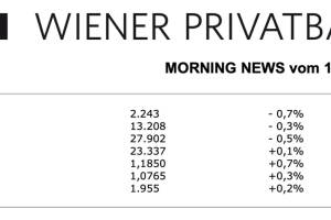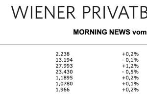 Die Wiener Börse beendete gestern einen ruhigen Handelstag mit einem schönen Zuwachs, der ATX konnte 1,0% stärker als noch am Vortag aus dem Handel gehen, wobei ein Großteil der Zuwächse ebenfalls im Späthandel erzielt werden konnte. Die Erste Group erhöhte das Kursziel für Marinomed von 133,0 Euro auf 135,7 Euro und bestätigte die Kaufempfehlung, das Biotechunternehmen war mit einem Zuwachs von 3,0% der größte Gewinner des gestrigen Tages. Agrana schloss nach der Vorlage von Ergebniszahlen mit einem Minus von 1,1%. Warburg Research bestätigte sowohl das Kursziel von 20,0 Euro als auch die Kaufempfehlung für Porr, der Baukonzern konnte sich leicht um 0,2% verbessern. Die Banken konnten einiges des am Vortag verlorenen Terrains wieder gutma... » Weiterlesen