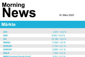 Nachdem die europäischen Börsen wieder mit deutlichen Abgaben in die neue Woche starteten, konnten sie die Verluste gegen Ende doch noch eindämmen. Der EuroStoxx 50 schloss mit einem Minus von 5,3%, der französische CAC 40 sackte 5,8% ab, der Dax konnte sein Minus auf 5,3% reduzieren und in London ging der FTSE 100 mit einem Minus von 4,0% aus dem Handel. Mehrere Notenbanken rund um den Globus haben mittlerweile geldpolitische Eingriffe angekündigt, um die wirtschaftlichen Folgen der Pandemie abzumildern. So hat auch die US-Notenbank zu weiteren drastischen Mitteln gegriffen. In einer Notfallaktion senkte sie den Leitzins in der Nacht zum Montag überraschend um einen ganzen Prozentpunkt auf fast null Prozent und kündigte ein Maßnahmenpaket in Koordination mit ande... » Weiterlesen