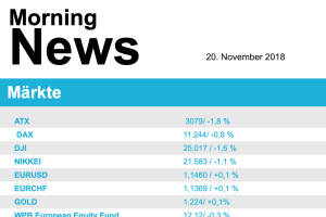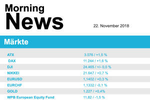 Schnäppchenjäger waren gestern an den europäischen Aktienmärkten unterwegs, auch die Risikoaversion ging zurück. Hintergrund waren wohl erste Stimmen, die meinen, dass die Fed 2019 ihren Zinserhöhungszyklus bremsen oder gar ab Frühjahr 2019 pausieren könnte. Die Daten aus den USA waren insgesamt solide, deuten aber daraufhin, dass sich das Wachstum wohl nicht noch mehr beschleunigt. Außerdem fielen die Aktienmärkte ja in den Tagen davor stark, insofern war es auch eine Erholungsbewegung von den starken Verlusten der Vortage. Von dem italienischen Budget gab es nicht wirklich Neuigkeiten, das erwartete Defizitverfahren der EU gegenüber Italien wurde eingeleitet. Dies stellte aber keine Überraschung dar. Auch an den US-Börsen konnte die Talf... » Weiterlesen