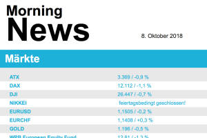 Wieder nach oben ging es gestern für die europäischen Börsen, die wichtigsten Indices konnten den Tag mit Zuwächsen beenden, Deutschland war feiertagsbedingt geschlossen. Es war wieder Italien, dieses Mal kamen positive Signale vom Apennin. Der italienische Finanzminister Tria hatte signalisiert, dass ab 2019 die Neuverschuldung sukzessive reduziert werden könnte, die Investoren nahmen diese Nachricht erfreut auf. Das brachte auch die italienische Börse nach fünf Verlusttagen in Folge wieder zu einem deutlichen Plus von 0,8%. Im Branchenvergleich hatten Telekommunikations- und Medienaktien die Nase vorn, beide Sektoren erzielten Gewinne von etwas mehr als 1,0%. Die Einzelhandelsunternehmen waren der einzige Sektor im roten Bereich mit einem Abschlag von 0,2%. Belastung k... » Weiterlesen