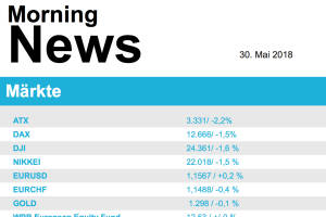 Die politischen Entwicklungen rund um Italien schickten die europäischen Aktienmärkte auf Talfahrt. Die Rendite zehnjähriger italienischer Anleihen schoss weiter nach oben. Dagegen fiel die Rendite der als "sicherer Hafen" angesehenen zehnjährigen Bundesanleihe um 8 Basispunkteauf 0,27 Prozent. Angesichts der politischen Krise in Italien wurden italienische Bankentitel abermals verkauft. So ging es für Unicredit um 5,6 Prozent nach unten und für Intesa Sanpaolo um 4,1 Prozent. In Madrid fielen Santander um 5,4 Prozent. Im DAX verloren Commerzbank 4,1 Prozent und Deutsche Bank 4,6 Prozent und führten damit klar die Verliererliste an. Der europäische Bankensektor fiel um gut 3 Prozent zurück. Der bankenlastige ATX verlor 2,2%, die Dividendenabschlä... » Weiterlesen