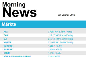 Befeuert von der weltweit robusten Konjunktur konnten die europäischen Börsen gestern deutliche Zuwächse erzielen. Bereits über Nacht hatte die japanische Börse mit einem regelrechten Kursfeuerwerk die entsprechenden Vorgaben geliefert. Der Einkaufsmanagerindex in der Eurozone näherte sich dem Siebenjahreshoch, was die Stimmung noch zusätzlich verbesserte. Auch beim Blick auf die Branchen spiegelt sich der konjunkturelle Optimismus wider, am stärksten war gestern in Europa der Bausektor, gefolgt von den Autobauern und dem Chemiesektor. Gegen den Markttrend abgeben mussten hingegen Immobilientitel. Bei den Einzelwerten sorgte die britische Kaufhauskette Debenhams für Aufsehen, das schwach verlaufene Weihnachtsgeschäft trübt den Ausblick und der Titel b... » Weiterlesen