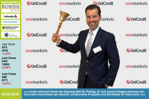 25.5. André Albrecht läutet die Opening Bell für Freitag. Er und seine Kollegen betreuen bei UniCredit onemarkets den Bereich strukturierte Produkte und Zertifikate für Österreich www.onemarkets.at de.html www.facebook.com groups GeldanlageNetwork #goboersewien 24.5. : Dominic Heinzl läutet die Opening Bell für Donnerstag. Ab September wird der TV-Moderator auf ATV wieder wöchentlich Society, Stars und Sternchen aufs Korn nehmen atv.at www.facebook.com groups GeldanlageNetwork #goboersewien 23.5 .: SBO-CFO Klaus Mader läutet die Opening Bell für Mittwoch. Das Unternehmen hat im 1. Quartal sowohl Umsatz und Ergebnis als auch die Auftragseingänge deutlich gesteigert 22.5.: Das Team der onvista bank mit der Opening Bell für D... » Weiterlesen