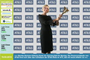 21.3.: Wilhelm Hörmanseder läutet die Opening Bell für Dienstag. Der Mayr-Melnhof-CEO blickt mit seiner Company auf ein gutes Jahr 2017 zurück: 155 Mio. Euro verdient, Dividende wird erhöht www.mayr-melnhof.com www.facebook.com groups GeldanlageNetwork #goboersewien 20.3.: Andreas Lichtblau läutet die Opening Bell für Dienstag. Nach dem Motto „der Garten für die Wand“ bringt er nun zusätzlich pflegefreie Moose aller Art in einer neuen Form in Innenräume http: www.wildesmoos.at www.facebook.com groups GeldanlageNetwork #goboersewien 19.3.: Monika Stoisser-Göhring läutet die Opening Bell für Montag. Die Finanzvorständin von AT&S freut sich über das Comeback der AT&S-Aktie im A... » Weiterlesen