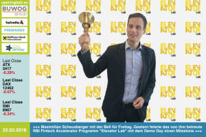 23.2.: Maximilian Schausberger läutet die Opening Bell für Freitag. Gestern feierte das von ihm betreute RBI Fintech Accelerator Programm "Elevator Lab" mit dem Demo Day einen Meilenestein, siehe Diashow http: www.photaq.com page index 3420 http: www.elevator-lab.com www.facebook.com groups GeldanlageNetwork #goboersewien 22.2.: Sandra Kühner läutet die Opening Bell für Donnerstag. Als Executive Director bei UBS Switzerland ist sie regelmässig in Österreich, verantwortlich u.a. für Private Banking www.ubs.com at de.html www.facebook.com groups GeldanlageNetwork #goboersewien 21.2.: Markus Hütter läutet die Opening Bell für Mittwoch. Der CEO und Gründer von BHS Technologies entwickelt mit seiner Company ein Produkt... » Weiterlesen