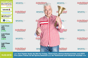 16.2.: Toni Polster läutet die Opening Bell für Freitag. Österreichs Jahrhunderttorschütze und UEFA Pro Lizenz Trainer ist bei Sports.Selection u.a. als Testimonial und Influencer buchbar www.heralic.at sports-selection-1 http: www.toni-shirts.at www.facebook.com groups Sportsblogged 15.2.: Irene Bučnik läutet die Opening Bell für Donnerstag. Die PKF-Graz-Dame checkt mit dem Börse Social Network B2B-Stammtische für Unternehmen und Investoren, zuletzt Healthtech http: www.pkf-graz.at www.facebook.com groups GeldanlageNetwork #goboersewien 14.2.: Andreas Sachs läutet die Opening Bell für Mittwoch. Mit cool running 160 brachte der Ex-Unilever-Manager Neuromusik für den Leistungs- und Breitensport auf den Markt http: www.ne... » Weiterlesen