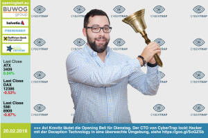20.2.: Avi Kravitz läutet die Opening Bell für Dienstag. Der CTO von CyberTrap lockt Hacker mit der Deception Technology in eine überwachte Umgebung, Details unter goo.gl SoGZSb http: www.cybertrap.com www.facebook.com groups GeldanlageNetwork #goboersewien 19.2.: Tara Geltner mit der Opening Bell für Montag. Sie ist Co-Gründerin von Tremitas, einem Medtech-Startup, das sich den Themen Parkinson und Essentieller Tremor widmet http: www.tremitas.com www.facebook.com groups GeldanlageNetwork #goboersewien 16.2.: Toni Polster läutet die Opening Bell für Freitag. Österreichs Jahrhunderttorschütze und UEFA Pro Lizenz Trainer ist bei Sports.Selection u.a. als Testimonial und Influencer buchbar www.heralic.at sports-selection-1 http: ww... » Weiterlesen