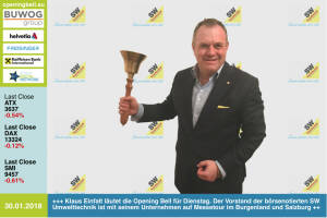 Klaus Einfalt, SW Umwelttechnik, läutet die Opening Bell für Dienstag