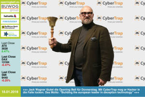 18.1.: Jack Wagner läutet die Opening Bell für Donnerstag. Mit CyberTrap mag er Hacker in die Falle locken, kann auch ein Riesenthema für die Börsenotierten sein. Das Motto: "Building the european leader in deception technology" cybertrap.com http: www.wienerborse.at www.facebook.com groups GeldanlageNetwork #goboersewien 17.1.: Katharina Beyersdorfer läutet die Opening Bell für Mittwoch. Die Sprecherin der Baader Bank bereitet in Koop. mit der Wiener Börse eine Austrian Conference in Amsterdam vor http: www.baaderbank.de http: www.wienerborse.at www.facebook.com groups GeldanlageNetwork #goboersewien 16.1.: Julia Emma Weninger läutet die Opening Bell für Dienstag. Die Chefredakteurin von http: www.leadersnet.at, dem grössten B... » Weiterlesen